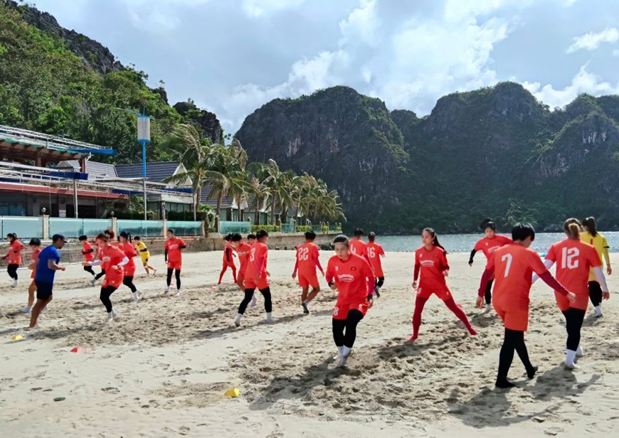 Các tuyển thủ nữ Việt Nam tập huấn tại Quảng Ninh. Ảnh: VFF