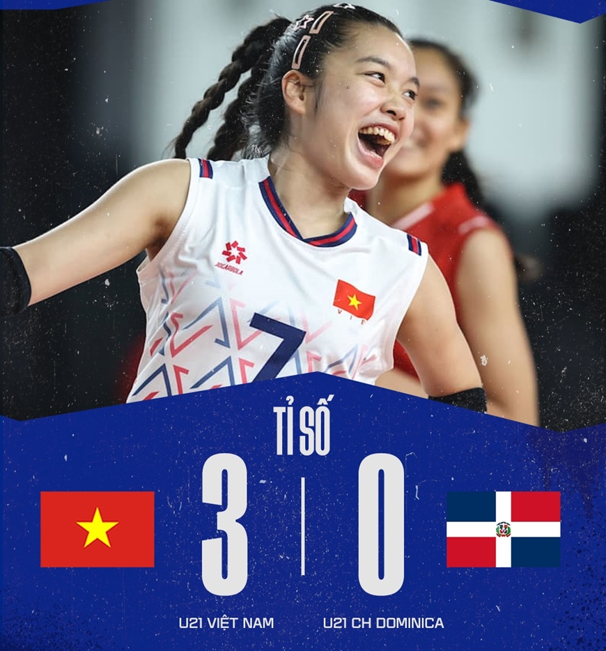 Đội tuyển U21 bóng chuyền nữ Việt Nam giành thắng lợi 3-0 trước U21 Cộng hoà Dominica và xếp hạng 19 chung cuộc tại Giải bóng chuyền U21 nữ vô địch thế giới 2025.