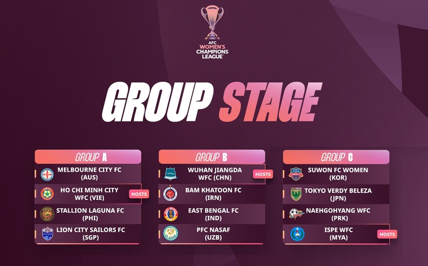 Vòng bảng Giải bóng đá nữ các câu lạc bộ châu Á 2025-2026 quy tụ 12 câu lạc bộ, trong đó câu lạc bộ nữ TP Hồ Chí Minh làm chủ nhà của bảng A (diễn ra từ ngày 12 đến 19-11). Bảng B tổ chức tại Trung Quốc từ ngày 17 đến 23-11 và bảng C diễn ra ở Myanmar từ ngày 9 đến 15-11.