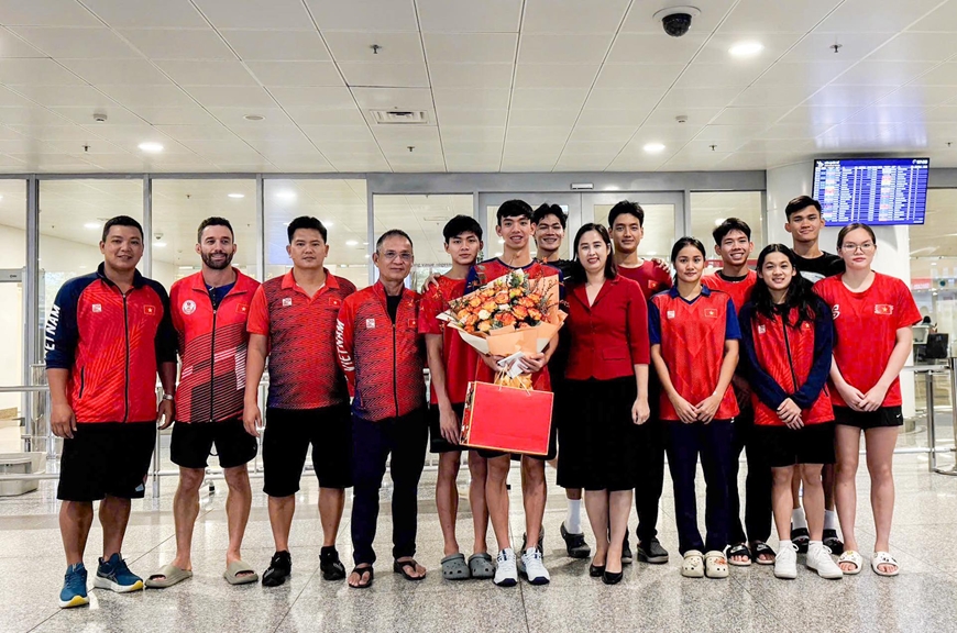 Ngày 2-10, đội tuyển bơi Việt Nam về nước, khép lại hành trình thi đấu ấn tượng với 2 huy chương vàng, 7 huy chương bạc, 6 huy chương đồng, đứng hạng 4 toàn đoàn tại Giải bơi vô địch châu Á 2025.