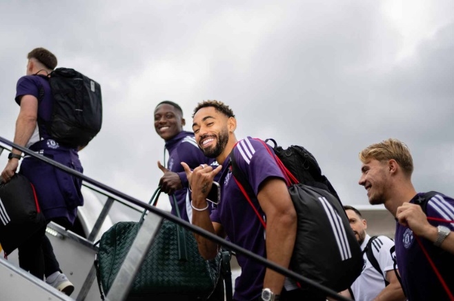 Tin thể thao (24-7): Các cầu thủ MU vui vẻ lên đường sang Mỹ du đấu. Ảnh: manutd.com