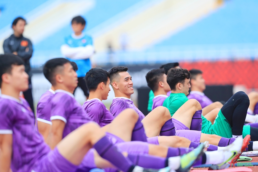 Trong buổi tập quan trọng này, huấn luyện viên Park Hang-seo chủ yếu cho các học trò thả lỏng nhằm tạo hưng phấn. Theo ghi nhận của phóng viên, các tuyển thủ Việt Nam tỏ ra khá thoải mái và niềm vui hiện rõ trên gương mặt của những Tiến Linh, Quang Hải, Văn Hậu, Hùng Dũng… Trái với cảm xúc của học trò, huấn luyện viên Park Hang-seo khá tâm trạng bởi đây là buổi tập cuối cùng của ông cùng đội tuyển tại Việt Nam, trước khi có thêm hai buổi tập nữa trên đất Thái Lan.