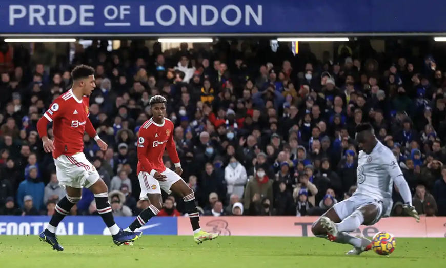 Thế trận bất ngờ đảo chiều ở đầu hiệp 2 khi MU có bàn thắng mở tỷ số nhờ pha dứt điểm của Jadon Sancho. Trước đó, hậu vệ Jorginho của Chelsea đã mắc sai lầm tai hại với pha đỡ hỏng tạo điều kiện cho Sancho đoạt được bóng.