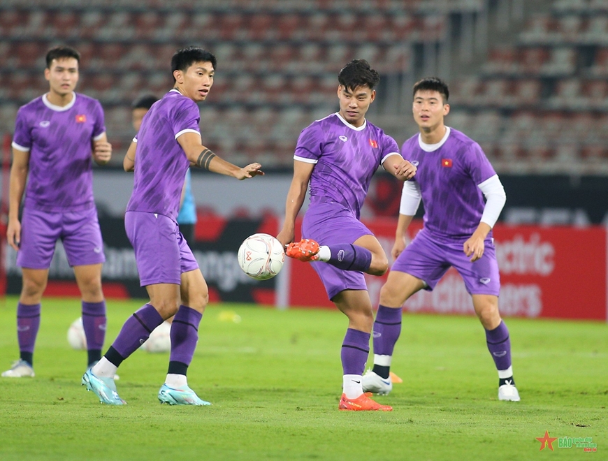Đội tuyển Việt Nam tập luyện sẵn sàng tái đấu Thái Lan. Ảnh: Việt An