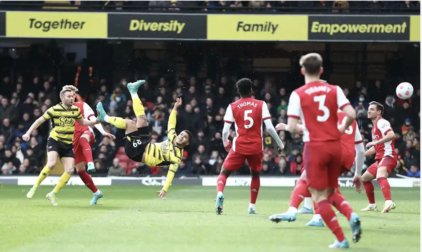 Nhưng đến phút 11, Watford đã có được bàn gỡ từ cú “ngả bàn đèn” đẳng cấp của Cucho Hernandez. Tình huống dứt điểm trong tư thế thoải mái của tiền đạo bên phía Watford một phần do lỗi chủ quan của hàng thủ Arsenal.