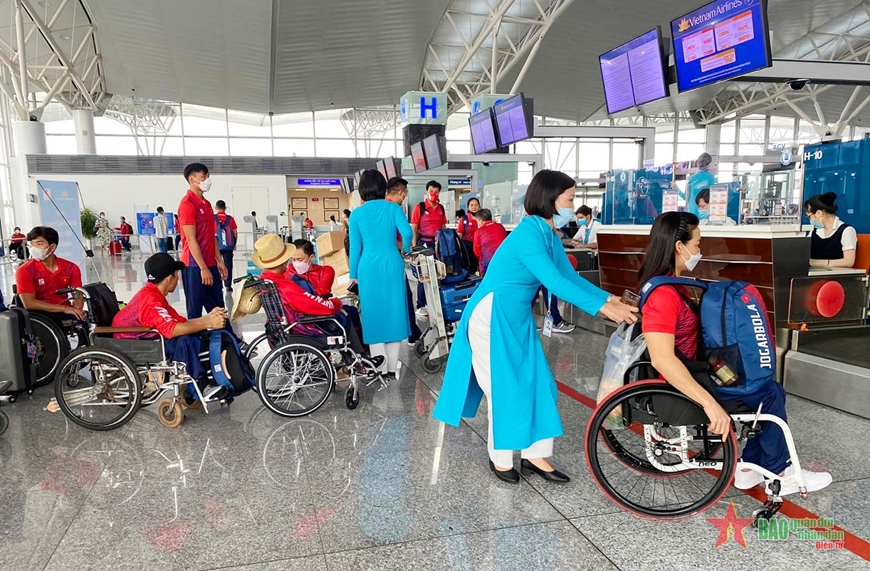 Sáng 26-7, tại sân bay Nội Bài (Hà Nội), đoàn thể thao người khuyết tật Việt Nam đã lên đường sang Indonesia tham dự Đại hội Thể thao người khuyết tật Đông Nam Á-ASEAN Para Games 11.