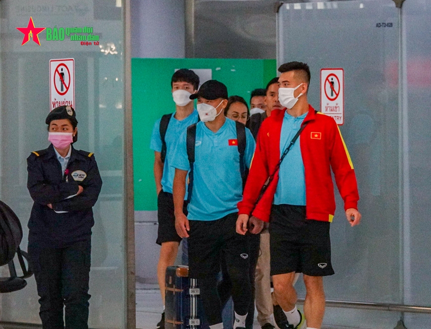 Chuyến bay mang số hiệu VN615 chở đội tuyển Việt Nam đã hạ cánh xuống sân bay quốc tế Suvarnabhumi ở thủ đô Bangkok lúc 15 giờ. Trước đó, thầy trò HLV Park Hang-seo rời sân bay Nội Bài (Hà Nội) lúc 12 giờ 40 phút và toàn đội có mặt tại thủ đô Bangkok sau khoảng 2 giờ bay.