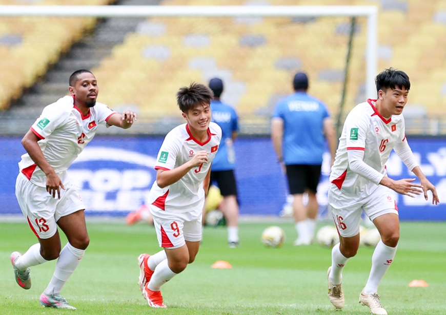 Một buổi tập của đội tuyển Việt Nam trước trận gặp Malaysia. Ảnh: VFF