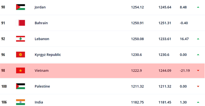 Bảng xếp hạng FIFA tháng 10 của đội tuyển Việt Nam. Ảnh : FIFA