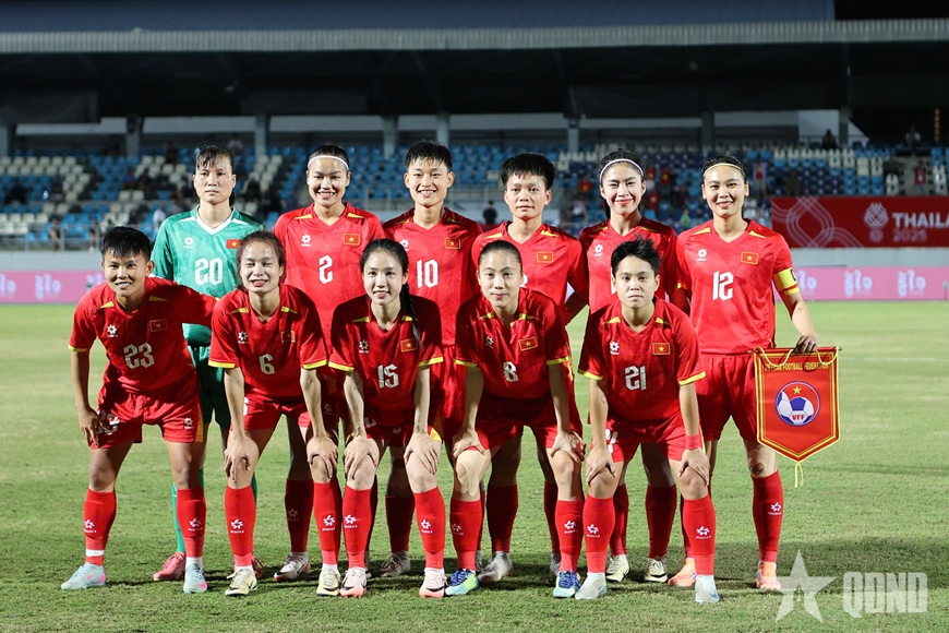 Đội hình xuất phát của đội tuyển nữ Việt Nam trong trận gặp Malaysia.