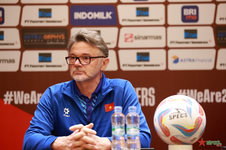 “Tôi có tròn 1 năm làm việc với cầu thủ Việt Nam, và đây là lúc họ thấm nhuần triết lý của tôi. Dù kết quả ở Asian Cup 2023 không như ý, đội tuyển Việt Nam vẫn có những điểm tích cực, kể cả với Indonesia. Chúng tôi hoàn toàn có thể ghi bàn vào lưới Indonesia. Toàn đội hiện rất tự tin”, chiến lược gia người Pháp khẳng định.