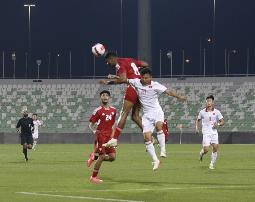 Một pha bóng quyết liệt trong trận U23 Việt Nam gặp U23 UAE. Ảnh: VFF.