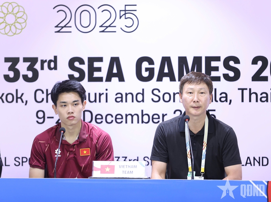 2 huấn luyện viên Kim Sang-sik và Garrath McPherson đã có những chia sẻ sau trận U22 Việt Nam thắng U22 Philippines 2-0 tại bán kết bóng đá nam SEA Games 33, diễn ra chiều 15-12.