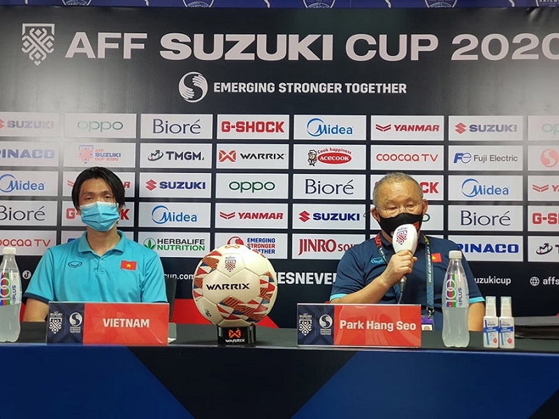“Thực sự, Malaysia luôn là đối thủ khó chơi, gây ra nhiều khó khăn cho chúng tôi. Hôm nay thắng được họ, tôi rất vui. Với tư cách là huấn luyện viên trưởng, tôi cảm ơn các cầu thủ vì đã thi đấu hết mình”, HLV Park Hang-seo mở đầu cuộc họp báo sau trận đấu.