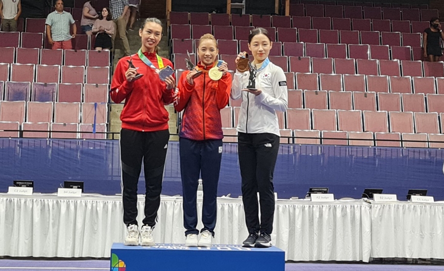 Dương Thúy Vi rạng ngời hạnh phúc khi nhận huy chương vàng ở World Games 2022. Ảnh: HOÀNG QUỐC VINH