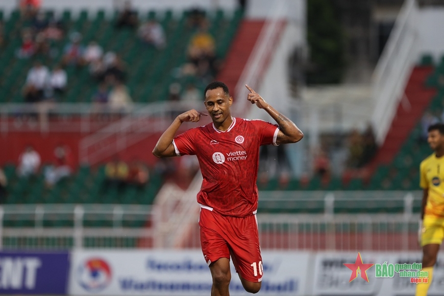 Niềm vui của tiền đạo Pedro Paulo sau khi ghi bàn cho Viettel FC. Ảnh: THU HÀ