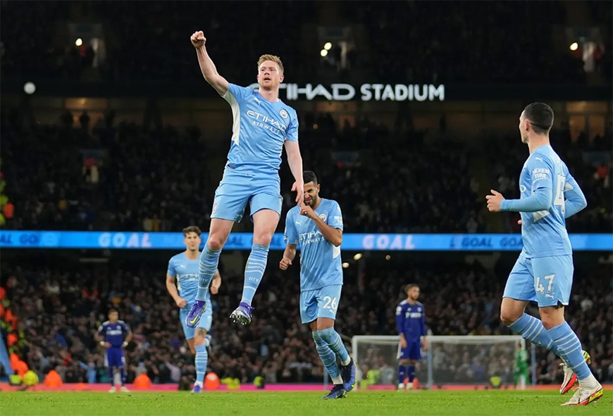 Kevin de Bruyne lập cú đúp đóng góp vào chiến thắng cho Man City. Ảnh: Getty Images.