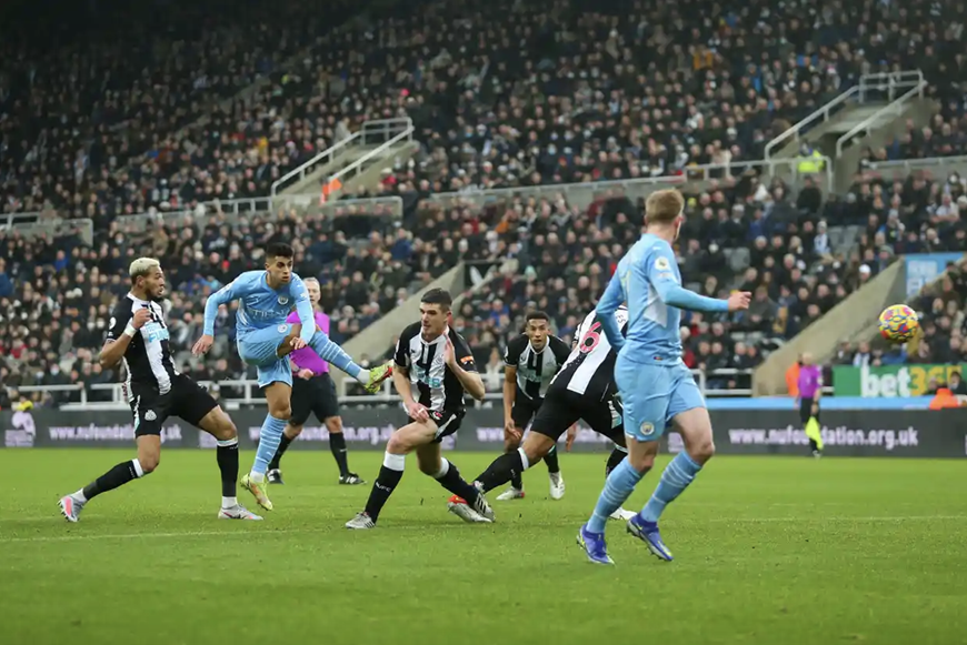 Là một trong số ít đội bóng được thi đấu ở vòng 18 giải Ngoại hạng Anh, Man City đã thi đấu tưng bừng trước Newcastle, đội đang đứng áp chót bảng xếp hạng. Trong 45 phút thi đấu tiên, đội khách kiểm soát hoàn toàn thế trận và có được hai bàn thắng. Ruben Dias mở tỷ số ngay ở phút thứ 5 của trận đấu, để rồi Joao Cancelo nâng tỷ số lên 2-0 cho nửa xanh thành Manchester ở phút 27 bằng cú sút đẳng cấp từ ngoài vòng 16m50.