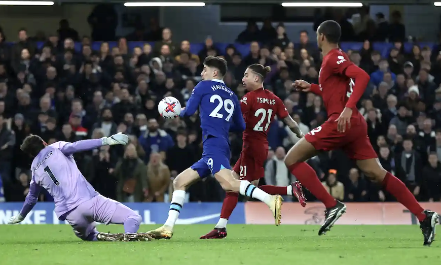 * Tạo ra được nhiều cơ hội hơn nhưng Chelsea đã không thể có được một chiến thắng trước đại kình địch Liverpool trong trận đá bù vòng 8 Ngoại hạng Anh vào rạng sáng nay. Tình huống rõ ràng nhất mà The Blues tạo ra là pha dứt điểm cận thành đưa bóng vào lưới của Kai Havertz. Tuy nhiên bàn thắng không được công nhận cho Chelsea bởi trước đó, cầu thủ người Đức đã để bóng chạm tay.