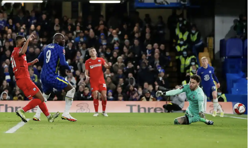 Lukaku đệm bóng cận thành nâng tỷ số lên 3-0 cho Chelsea ở phút 20 của trận đấu. Ảnh: The Guardian