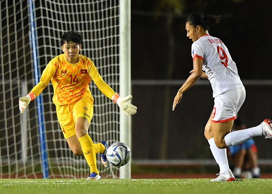 Thủ môn Trần Thị Kim Thanh (bên trái) là chốt chặn tin cậy trước khung thành đội tuyển nữ Việt Nam. Ảnh: VFF.
