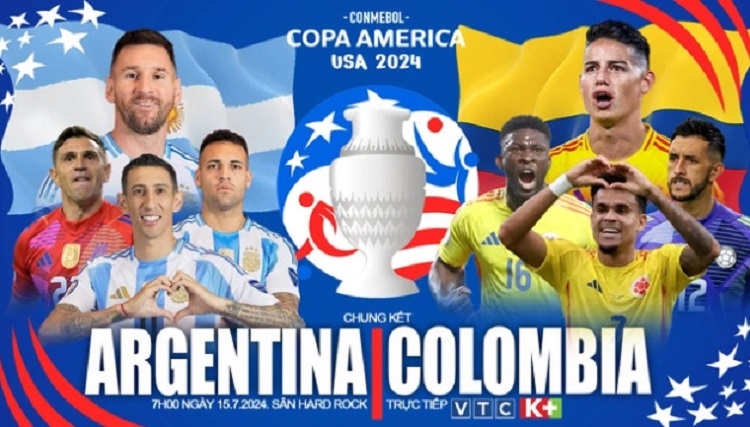 Trận chung kết giữa Argentina và Colombia sẽ được truyền hình trực tiếp trên kênh VTC1, TV360 và kênh K+. Quý khán giả cũng có thể theo dõi trực tiếp trận đấu qua trang vtc.gov.vn/live.