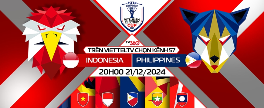 Trận Indonesia gặp Philippines diễn ra lúc 20 giờ ngày 21-12, trực tiếp trên kênh VTV Cần Thơ, ứng dụng TV360 và FPT Bóng đá Việt.