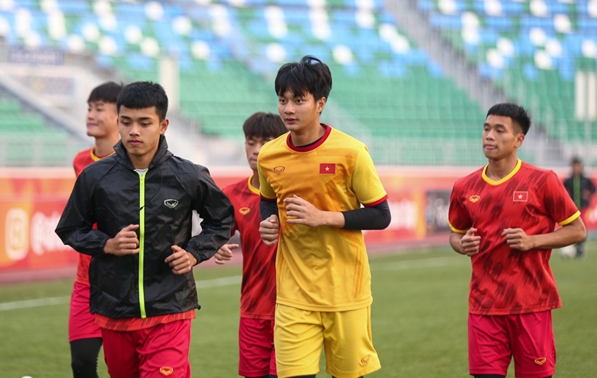 Cầu thủ U20 Việt Nam tích cực tập luyện cho trận gặp U20 Iran. Ảnh: VFF.