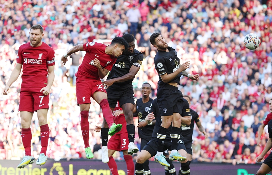Quyết tâm giành chiến thắng của Liverpool được hiện thực hóa từ rất sớm. Ngay phút thứ 3, Salah nhả bóng để Roberto Firmino thực hiện quả tạt giúp Luis Diaz đánh đầu tung lưới Bournemouth. Trọng tài đã tham khảo VAR trước khi công nhận bàn thắng cho “Lữ đoàn đỏ”.