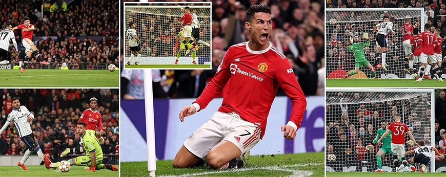 Ronaldo sắm vai người hùng trong chiến thắng kịch tính của Man Utd trước Atalanta. Ảnh: dailymail