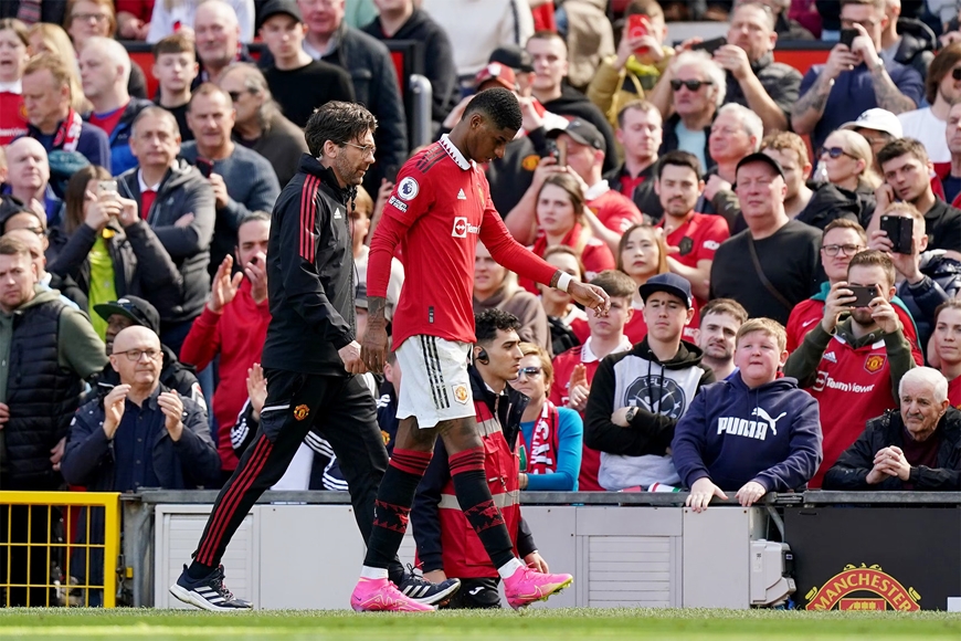 Vào phút 81 (lúc này “Quỷ đỏ” đang dẫn 2-0), một va chạm trên sân khiến Marcus Rashford gặp phải vấn đề ở chân phải và không thể thi đấu được. Ngay lập tức, HLV Erik ten Hag bất đắc dĩ rút tiền đạo này và tung Wout Weghorst vào thay.
