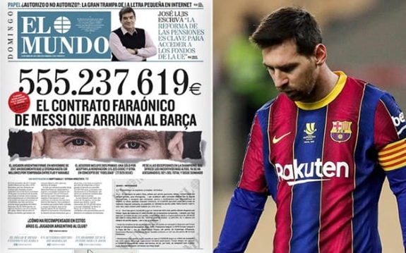 Trước đó, báo chí liên tiếp đăng tải thông tin: Barca nợ ngân hàng hơn 1,2 tỷ euro; Barca đang xin các cầu thủ giảm lương; Barca yêu cầu các cầu thủ chủ động giảm tiền thưởng; Barca đang chậm lương cầu thủ tháng 1-2021… Những thông tin trên đã khiến những người yêu mến đội bóng xứ Catalan bị tổn thương, nhưng tin L.Messi kiếm hơn 555 triệu euro từ Barca trong 4 năm qua mới khiến nhiều người hoang mang, tò mò.