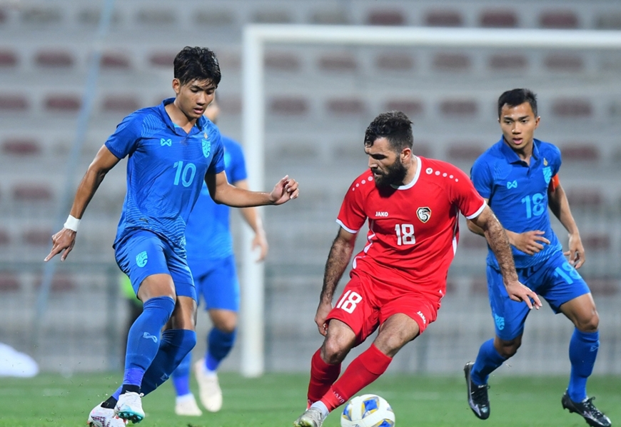 Đội tuyển Syria (áo đỏ) trong trận thắng Thái Lan 3-1 mới đây. Ảnh: VFF