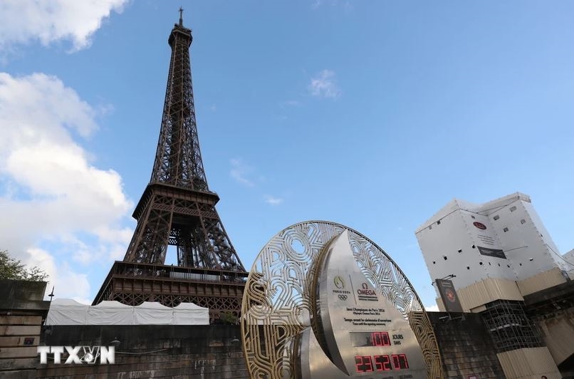 Đồng hồ đếm ngược tới thời điểm khai màn Olympic Paris 2024. Ảnh: TTXVN