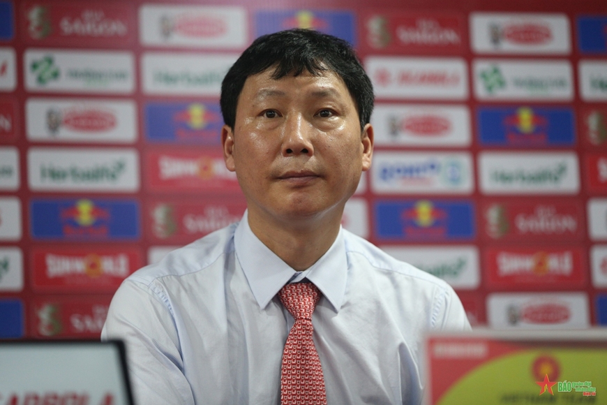 Huấn luyện viên Kim Sang-sik phát biểu sau trận đấu.