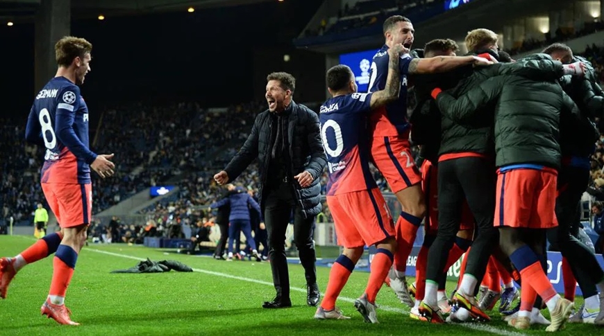 Niềm vui của thầy trò HLV Diego Simeone sau chiến thắng 3-1 trên sân của Porto. Ảnh: uefa.com