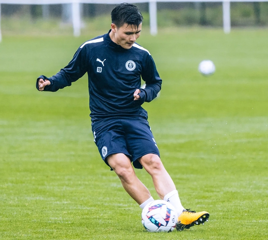 Tiền vệ Quang Hải trong buổi tập cùng Pau FC. Ảnh: Pau FC.