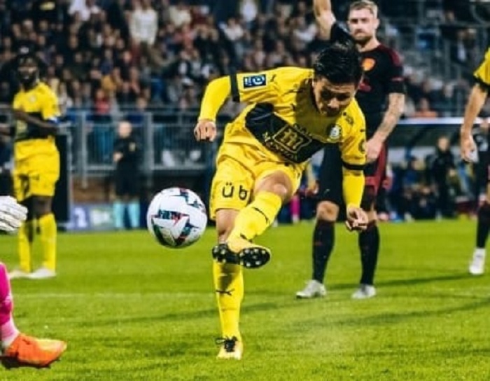 Quang Hải có bàn thắng đầu tiên trong màu áo của Pau FC tại Ligue 2. Ảnh: Pau FC