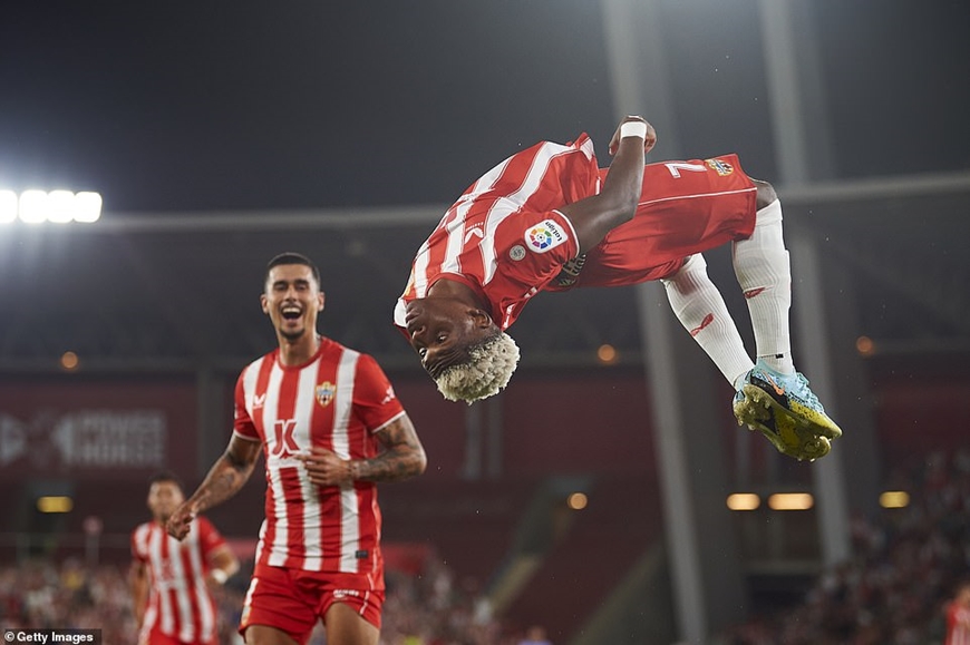 Largie Ramazani ăn mừng bàn thắng mở tỷ số cho Almeria. Ảnh: Getty Images