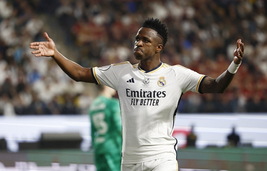 Tiền đạo Vinicius ghi hat-trick giúp Real Madrid giành chiến thắng 4-1 trước Barca tại trận chung kết tranh Siêu cúp Tây Ban Nha 2023-2024.