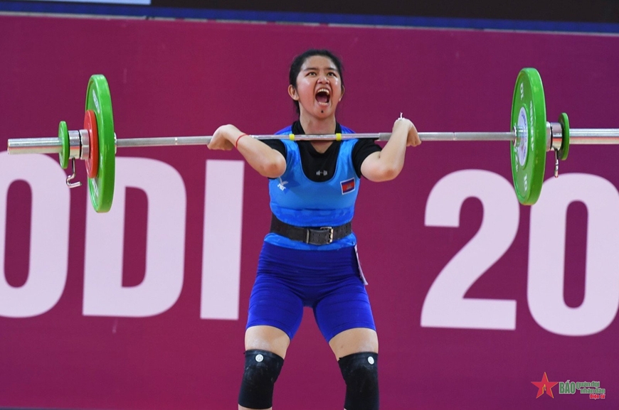 Dù có mức nâng tạ rất thấp nhưng nữ đô cử Campuchia Try Sopheakreach vẫn giành huy chương đồng SEA Games 32 hạng cân 55kg, môn cử tạ.