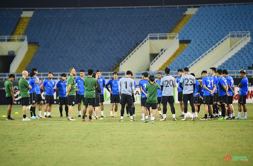 Trong buổi tập làm quen sân Mỹ Đình, huấn luyện viên Mano Polking cùng các trợ lý đã nhắc nhở học trò rất nhiều. Ngoài ra, ông dành nhiều thời gian để trao đổi với bác sĩ và tiền đạo Teerasil Dangda về chấn thương của cầu thủ này. Khả năng ra sân của Teerasil Dangda-chân sút đang sở hữu 6 bàn thắng tại AFF Cup 2022-vẫn chưa chắc chắn.