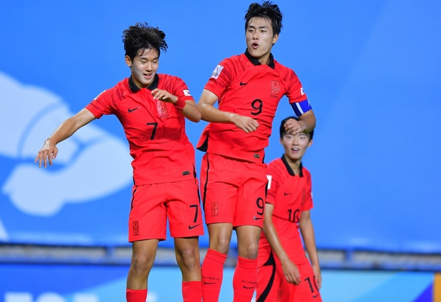 Niềm vui của các cầu thủ U17 Hàn Quốc khi ghi bàn vào lưới U17 Uzbekistan. Ảnh: AFC