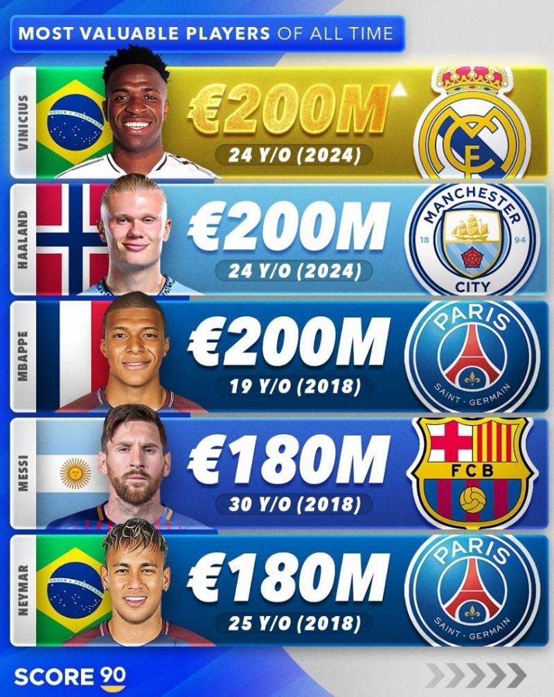 Con số này không chỉ đưa họ trở thành những cầu thủ có giá trị cao nhất thế giới hiện nay mà còn vượt qua kỷ lục trước đó của những tên tuổi lớn như Lionel Messi, Kylian Mbappe và Jude Bellingham thiết lập.