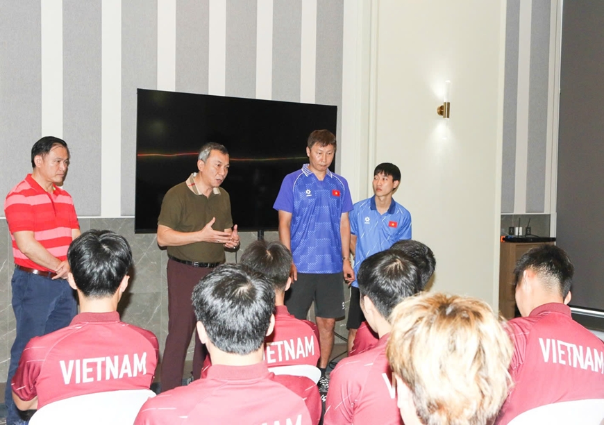 Chủ tịch VFF động viên U22 Việt Nam trước trận bán kết SEA Games 33
