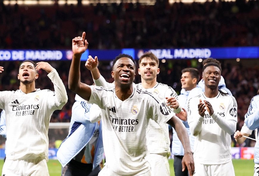 Các cầu thủ Real Madrid mừng tấm vé vào tứ kết. Ảnh: Real Madrid FC