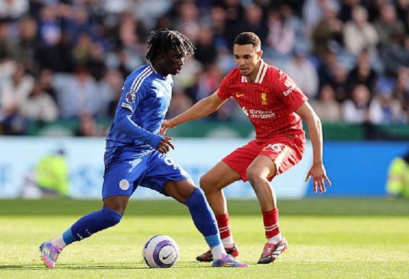 Ở bên kia sân, Leicester cũng có pha bóng nguy hiểm đáp trả. Phút 10, Wilfred Ndidi sút xa hiểm hóc nhưng bóng lại đập trúng cột dọc, lỡ mất cơ hội mở tỷ số cho đội nhà.