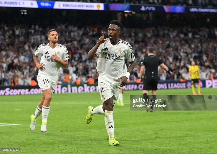 Bước vào hiệp 2, Real Madrid chơi bùng nổ và tạo nên những khoảnh khắc không tưởng. Phút 60, Mbappe tạt bóng chuẩn xác để Rudiger đánh đầu tung lưới Dortmund, rút ngắn cách biệt xuống 1-2. Và chỉ 2 phút sau, Vinicius chớp thời cơ ghi bàn gỡ hòa 2-2.