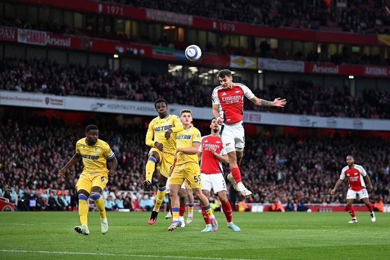 Với lợi thế sân nhà, Arsenal tạo sức ép mạnh mẽ bên phần sân đối phương. Ngay phút thứ 3, “Pháo thủ” sớm có bàn mở điểm khi Odegaard treo bóng thuận lợi, Kiwior băng đến dứt điểm bằng đầu tung lưới Crystal Palace.