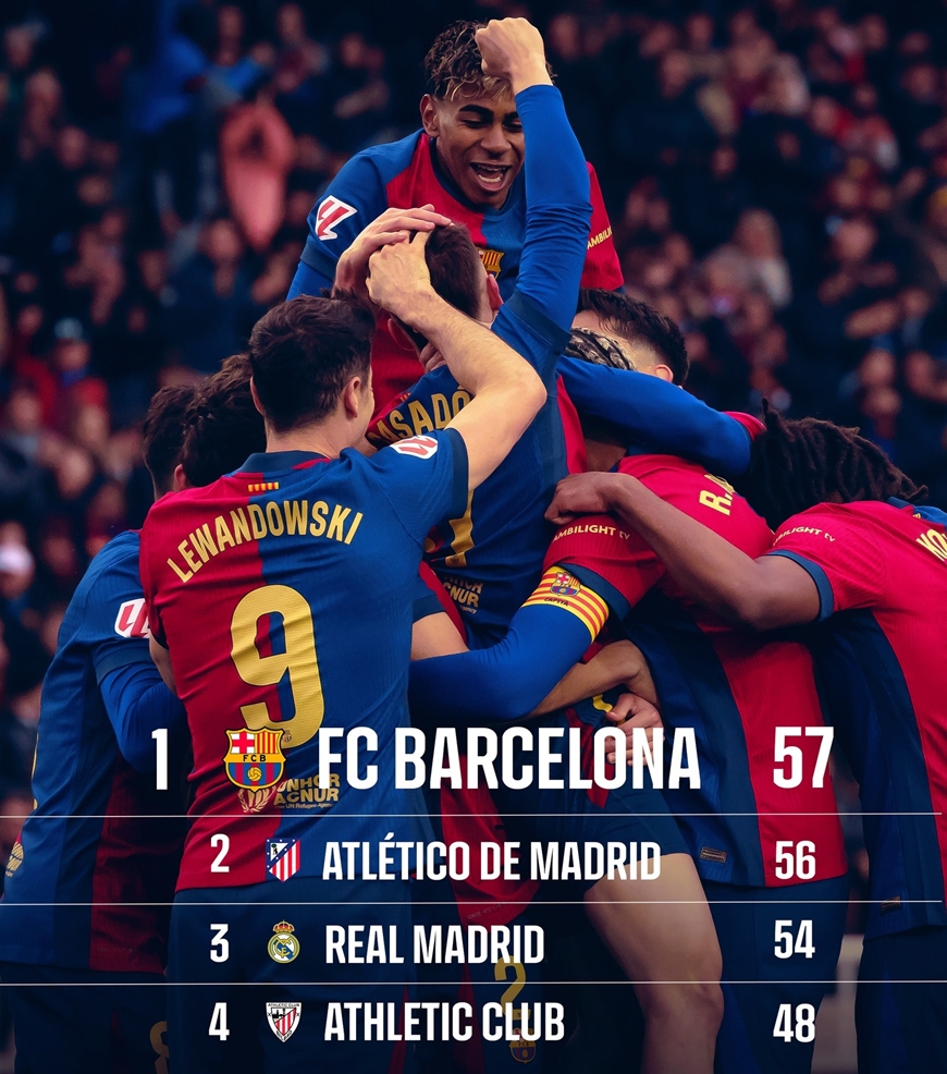 Hiệp 2 diễn ra với thế trận áp đảo thuộc về Barca. Phút 56, Araujo nâng tỷ số lên 3-0, trước khi Lewandowski ấn định tỷ số 4-0 ở phút 60. Kết quả trên giúp Barca sở hữu 57 điểm, đòi lại ngôi đầu từ tay Atletico Madrid với 1 điểm nhiều hơn.